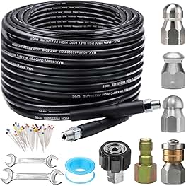 Amazon Com Sewer Line And Drain Jetter Kit 1 4 X 50 Hose With Sewer Nozzle Adapters Everything Else