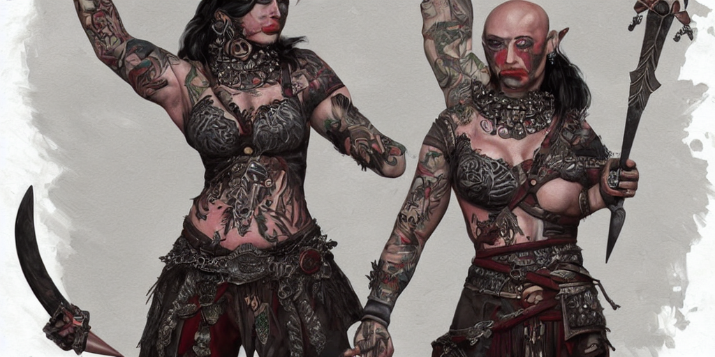 Prompthunt A Highly Detailed Painting Of A Bald Female Gladiator With Stylized Animal Tattoos And Two Daggers Inspired By Fairuza Balk And Ruby Rose Trending On Artstation